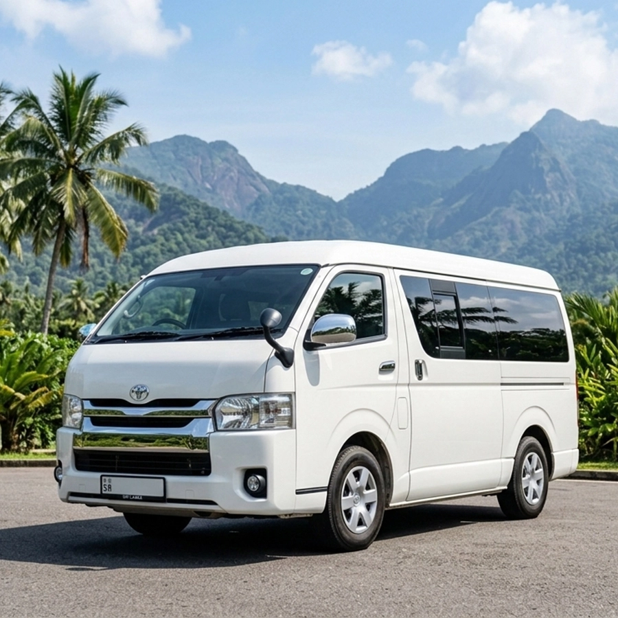 Toyota KDH (Hiace) is a comfortable and reliable van ideal for airport transfers, tours, and group travel across Sri Lanka. It can accommodate 9–15 passengers, making it perfect for families, tourist groups, and business trips.